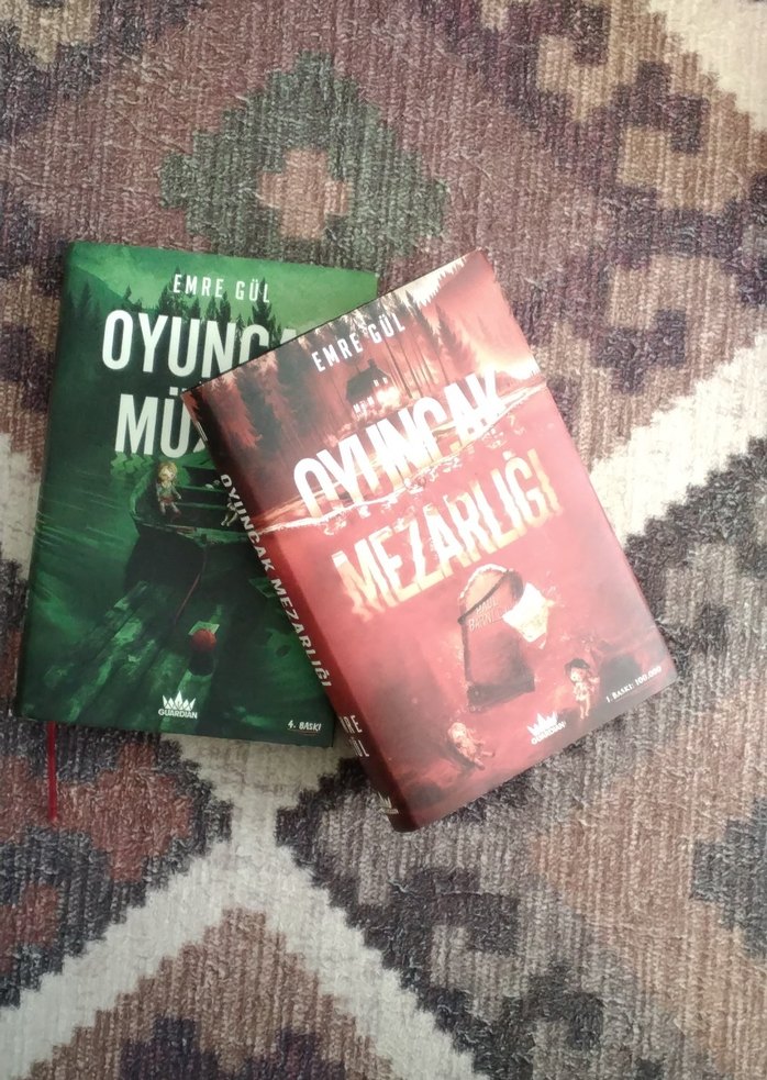 Emre Göl'ün 'Oyuncu Mezarlığı' ve 'Oyuncu Müzesi' adlı iki romanından oluşan set, karanlık ve etkileyici kapaklara sahip. tek tek 1. kitap okunup altı çizilmiştir ve poster yok 2. kitapta ayraç var