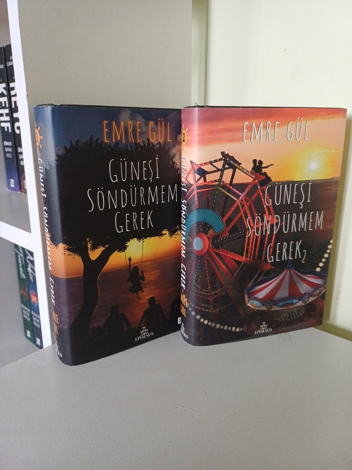 Emre Gül'ün 'Güneşi Söndürmem Gerek' ve devam kitabından oluşan set. Kapaklarda günbatımı ve silüetler yer alıyor.