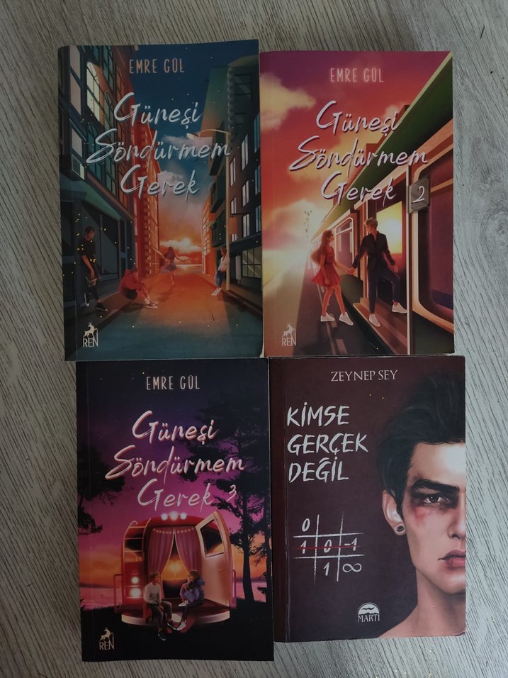 Emre Gül ve Zeynep Sey'nin dört romanını içeren set, 'Güneşi Söndürmem Gerek' ve 'Kimse Gerçek Değil' gibi kitaplar bulunuyor.