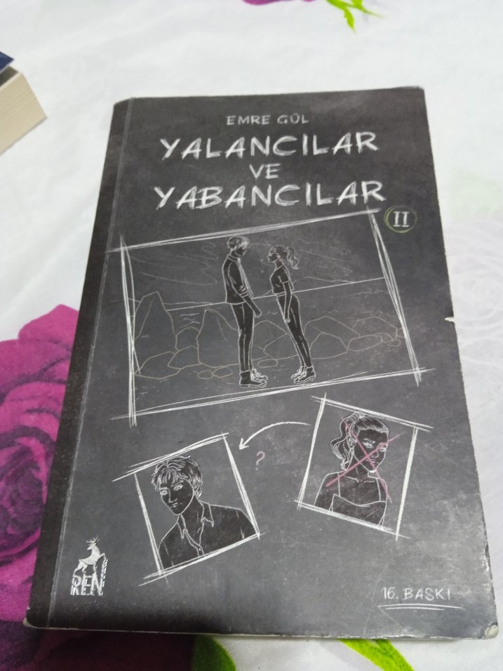 Emre Gül'ün 16. baskı olan "Yalancılar ve Yabancılar II" adlı romanı, siyah kapaklı ve çizimlerle süslü.