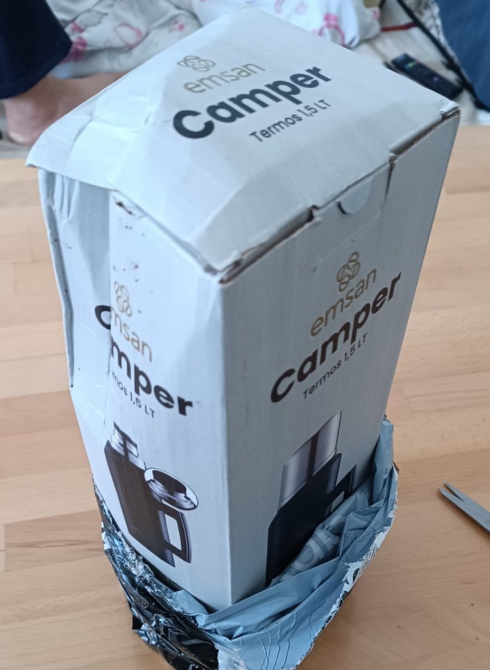 Emsan Camper 1,5 L termos, camel renk ve gri detaylara sahiptir. Sıcaklığı koruyan, kullanışlı ve dayanıklı yapıya sahiptir. ☕ 1 kere kullanıldı denemek için