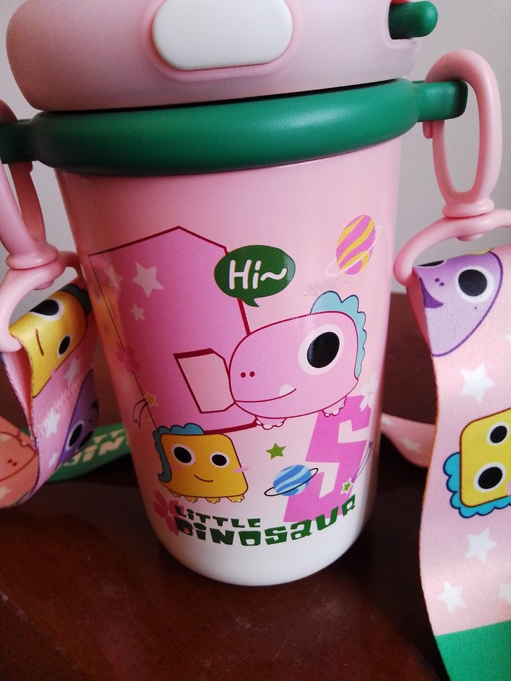 Emsan Çelik dinozor suluk. ürün sıfır ancak defolu üründür defolu kısmını fotoğraflayıp yükledim Canlı pembe renkli çocuk termos şişesi, dinozor desenli ve yeşil kapaklıdır. Taşıma için kayışı vardır, üzerinde "Hi" yazısı bulunur.