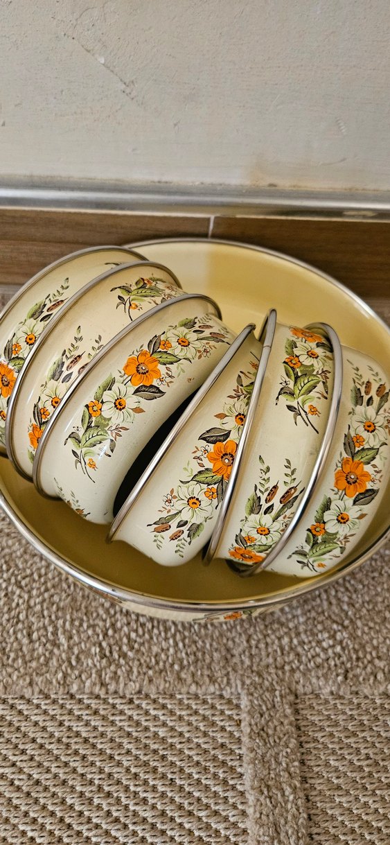Kullanılmamış ürün...eski üretim...nadide bulunacak bir takım.büyük sahan ve iki kasede çok küçük bir siyahlık var. kendinden kesinlikle..ürün sıfır , tertemiz kullanılmamıştır.