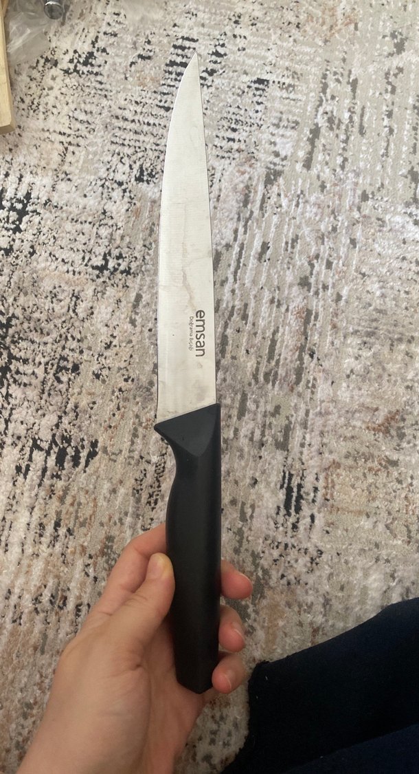 Emsan mutfak bıçağı gri bıçağı ve siyah ergonomik sapı ile rahat kullanım sağlar. Mutfakta çeşitli kesme işlemleri için uygundur. KULLANDIM AMA AZ FOTOĞRAFLARDA GÖRÜLDÜĞÜ GİBİ #emsan #bıçak
