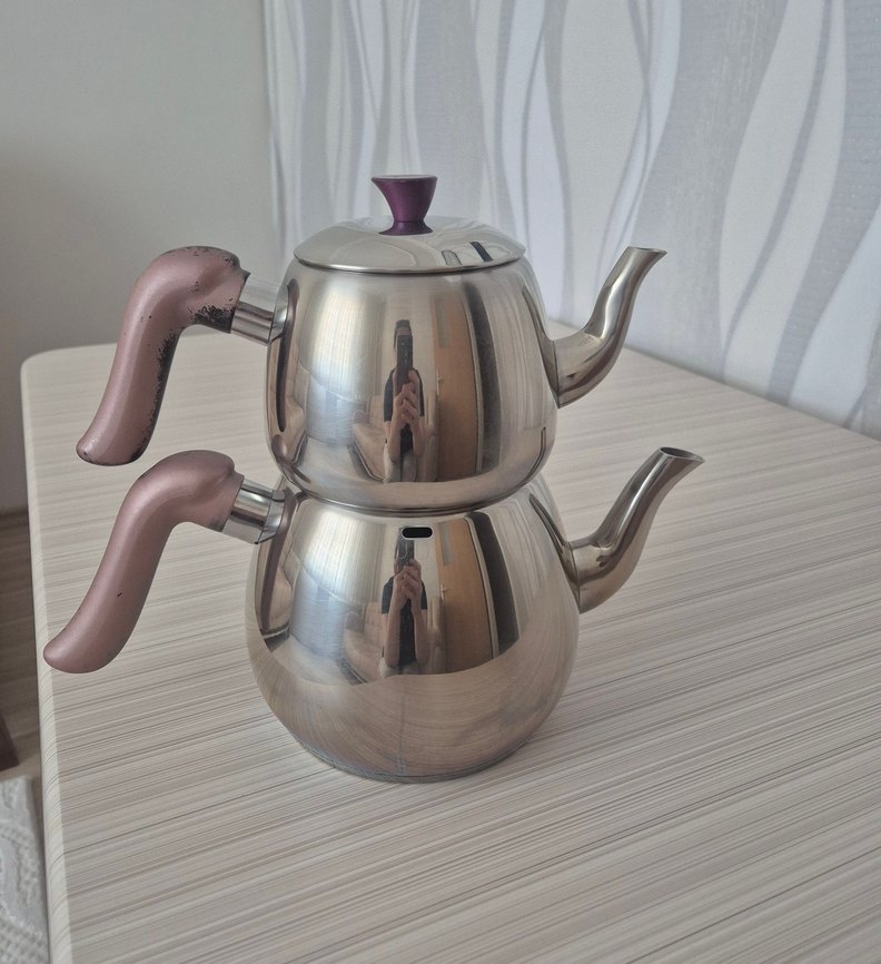 Alt demlik 2 litre,üst demlik 1litre su alıyor,alt demlik kapaksız