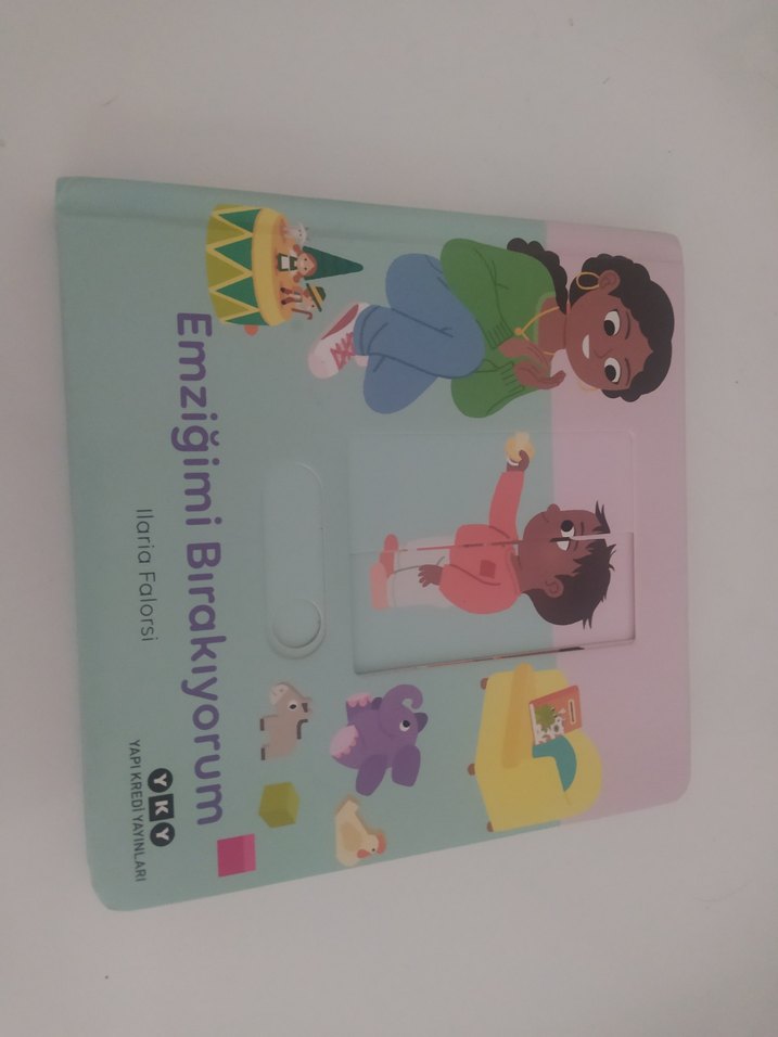 Ilaria Falorsi'nin 'Emziğimi Bırakıyorum' adlı çocuk kitabı, emziği bırakmayı anlatan renkli çizimlere sahip bir kitap.