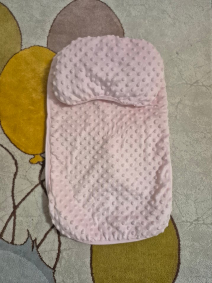Pastel pembe, dokulu yüzeye sahip yumuşak emzirme ve alt açma yastığı, konfor sağlar.