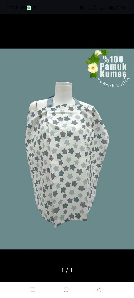 %100 pamuk kumaştan, gri bağlamalı yıldız desenli, emzirme önlüğü