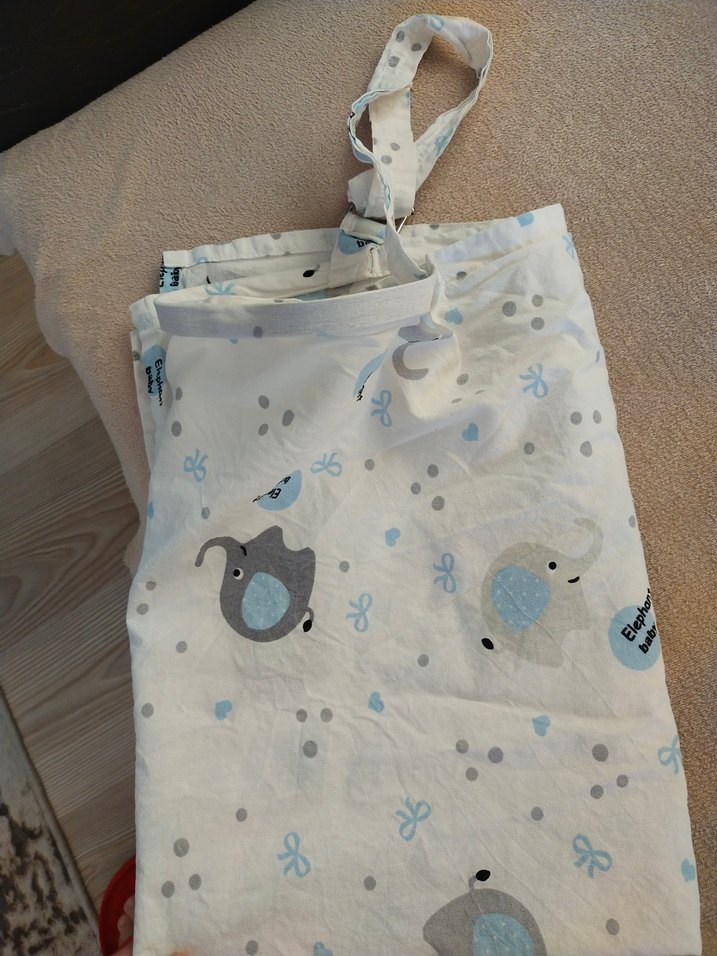 belki gözden kaciridmgim çok ufak kusurları vardır Yumuşak pamuklu kumaştan yapılmış, gri zemin üzerine hayvan ve küçük desenler baskılı çocuk uyku aksesuarı. Askı kayışı bulunur.
