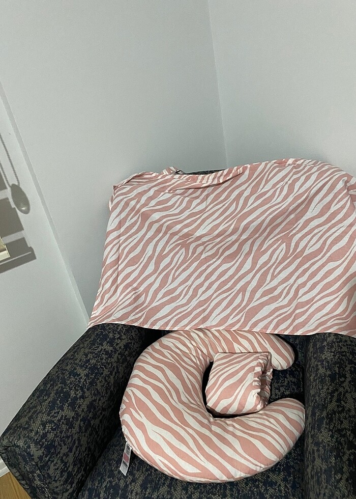 Emzirme önlüğü üstü ince demir, emzirirken kolaylık oluyor bebeği görebiliyorsun. Emzirme yastığı C formunda ve bebek baş koyması terlememesi için kolluk
