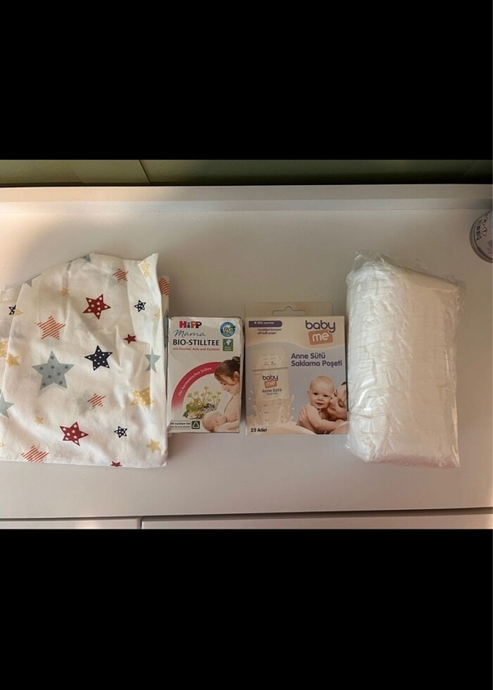 Emzirme örtüsü, göğüs pedi, süt artırıcı çay ve anne sütü saklama poşeti set halinde satıyorum. Süt saklama poşetinden sadece iki tane kullanıldı diğerleri hiç kullanılmadı