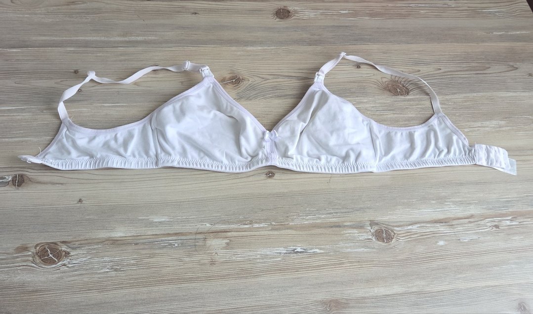 Beyaz, desensiz, ayarlanabilir askılı minimalist bohem tarzda normal uzunlukta sütyen.