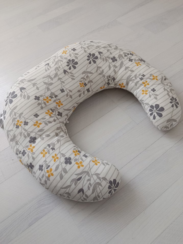 Hamilelik ve emzirme sırasında destek sağlayan, çiçek desenli gri yastık. isaretledigim yerden sökülmesi oldu onuda diktim sağlam leke vs yoktur