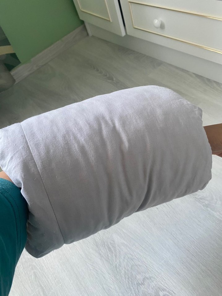 Yumuşak dokulu, düz gri renkte yastık kola geçirmeli emzirme yastığı olarak geçiyor . Rahat kullanım sunar temiz kullanıldı