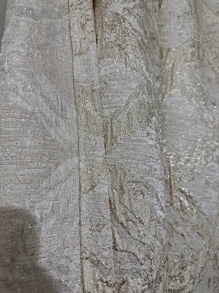 Bu krem perde, parlak işlemeli detayları ve bohem tarzıyla mekana doku ve zarafet katıyor.