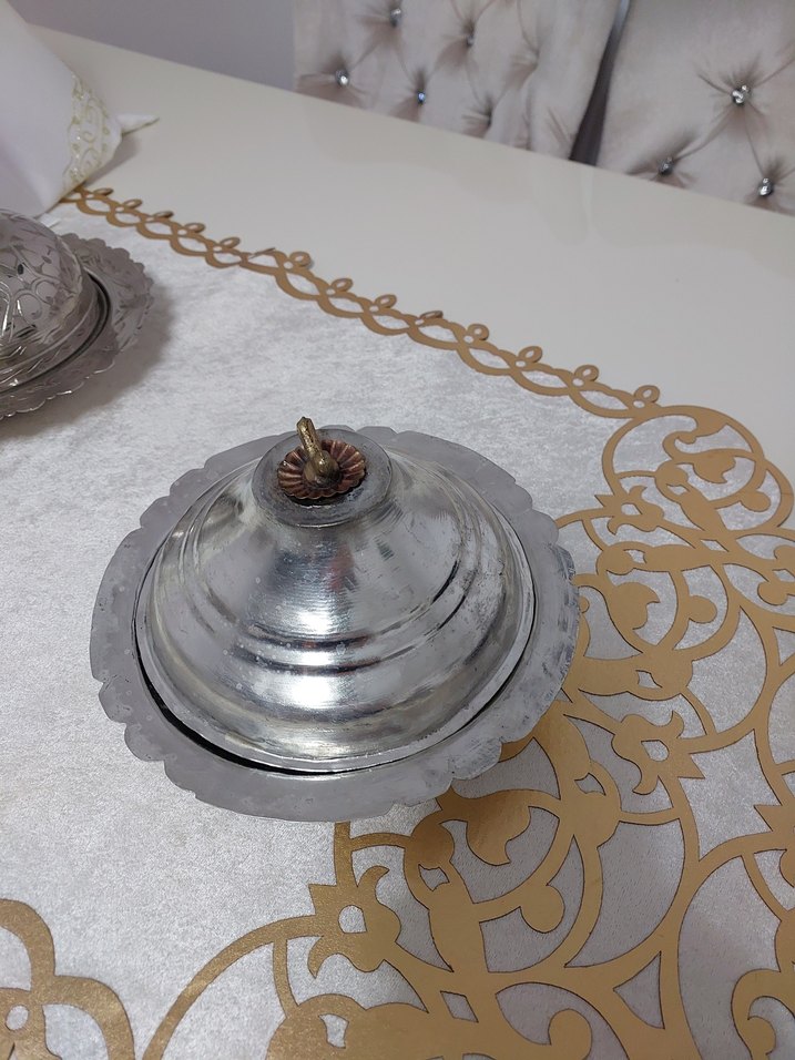en az 60 yıllik antika yeni kalaylanmiş sunum tabagi