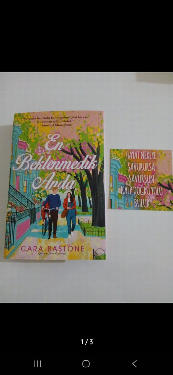 Cara Bastone'un yazdığı "En Beklenmedik Anda" romanı, bahar temalı şehir manzarasında yürüyen bir çifti gösteren renkli kapak tasarımına sahip. Aşk ve hayatın beklenmedik anlarını anlatıyor.