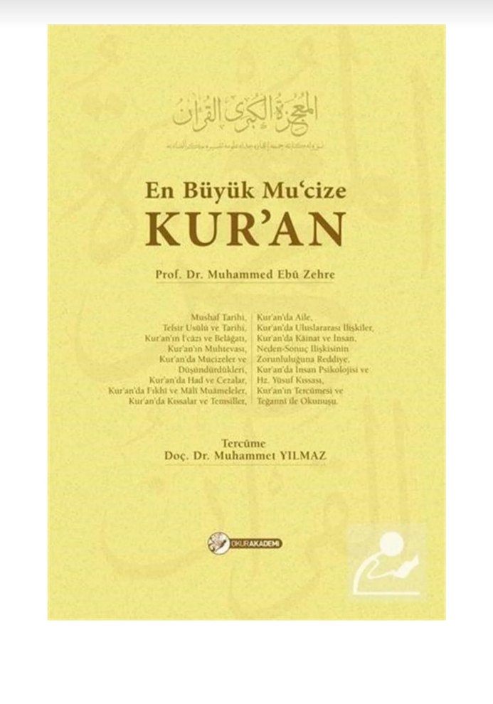 "En Büyük Mu'cize Kur'an" kitabı, Kur'an'ın tarihi, mucizeleri ve ilişkilerini detaylı şekilde inceleyen Prof. Dr. Muhammed Eba Zehre'nin eseridir, çevirmen Doç. Dr. Muhammet Yılmaz.