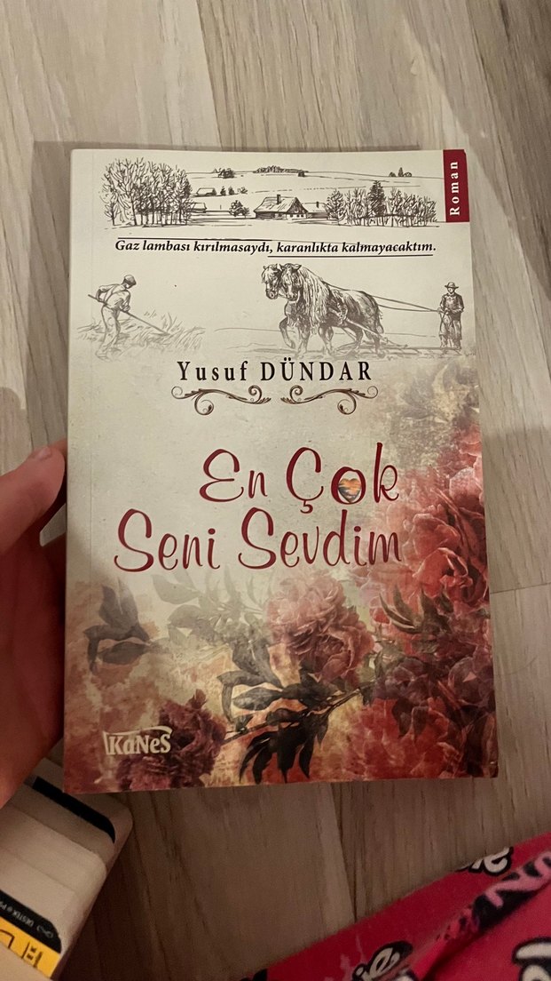 Yusuf Dündar'ın "En Çok Seni Sevdim" romanı, derin duygular ve anıları konu alıyor. Kapakta güller ve kırsal bir sahne yer alıyor.