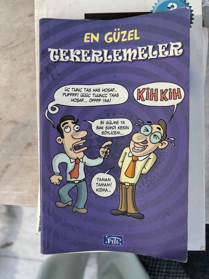 "En Güzel Tekerlemeler" adlı mizah kitabı, eğlenceli tekerlemeler ve komik diyaloglar içerir. Karikatür tarzı çizimler ve neşeli ifadeler bulunur.
