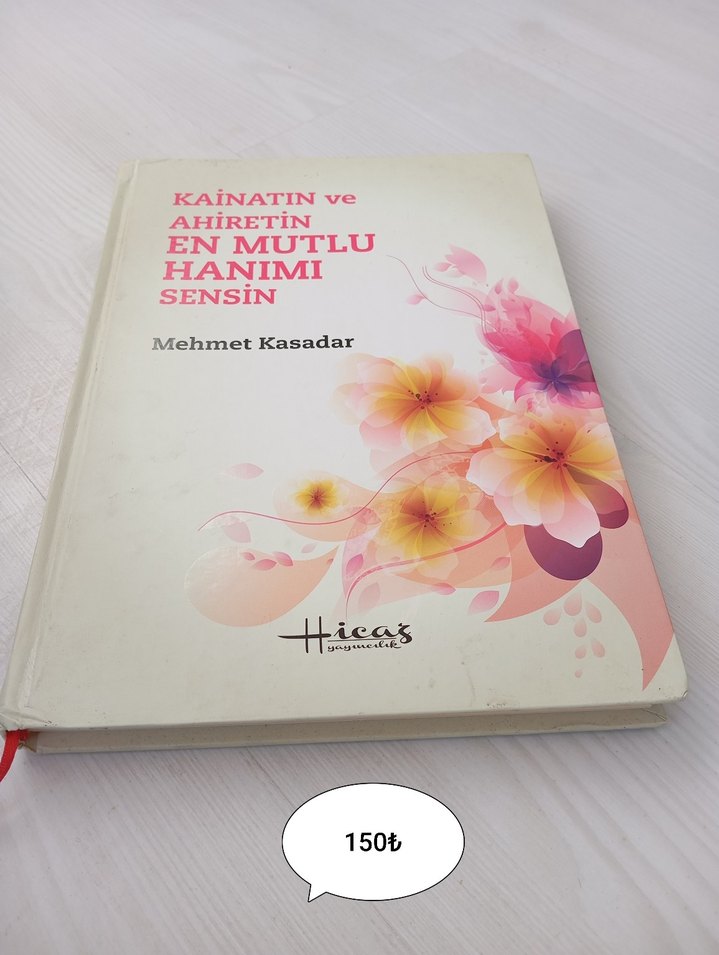 Mehmet Kasadar'ın 'En Mutlu Hanımı Sensin' adlı şiir kitabı, çiçek desenli kapak ve mutluluk ile ahiret temalarını içerir.