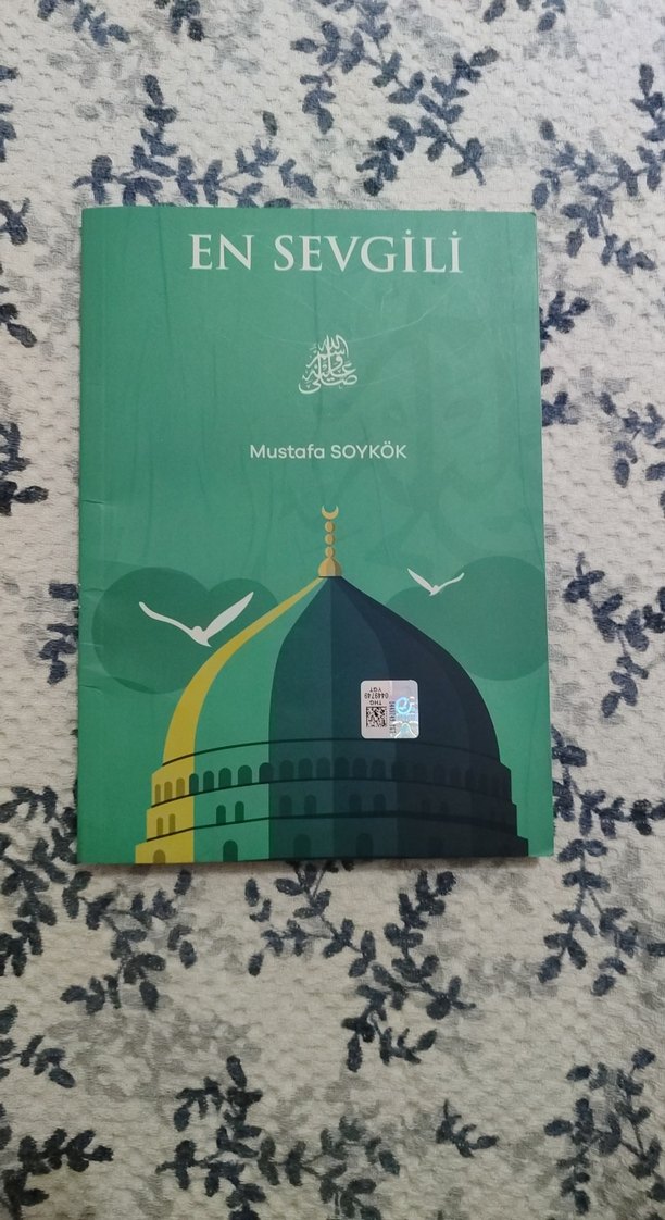 Mustafa Soykök'ün "En Sevgili" adlı dini kitabı, yeşil kapaklı ve cami kubbesi ile kuşlar çizimi içerir.