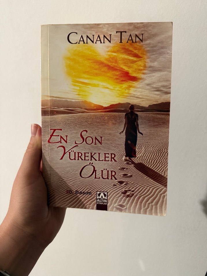 Canan Tan'ın "En Son Yürekler Ölür" kitabı, duygusal yolculukları ve hayatın zorluklarını anlatıyor. Kapakta gün batımında çölde yürüyen bir figür var.