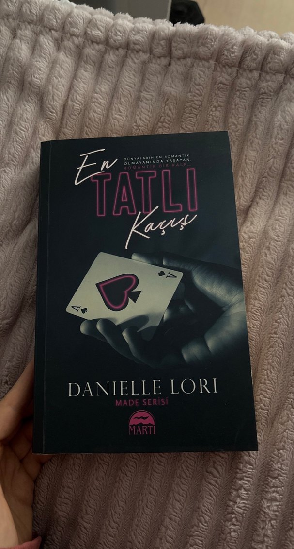 Danielle Lori'nin Martı yayınlarından çıkan "En Tatlı Kaçış" kitabı, Made serisine ait romantik bir roman. Kapağında kalpli iskambil kartı tutan bir el görünüyor. ❤️
