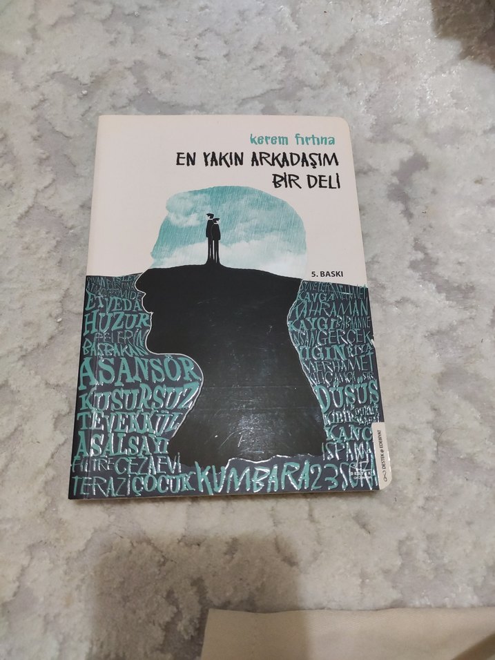 Kerem Fırına'nın "En Yakın Arkadaşım Bir Deli" adlı romanı, özgün anlatımı ve temalarıyla dikkat çekiyor. Kapakta sanatsal tipografi ve siluet yer alıyor.