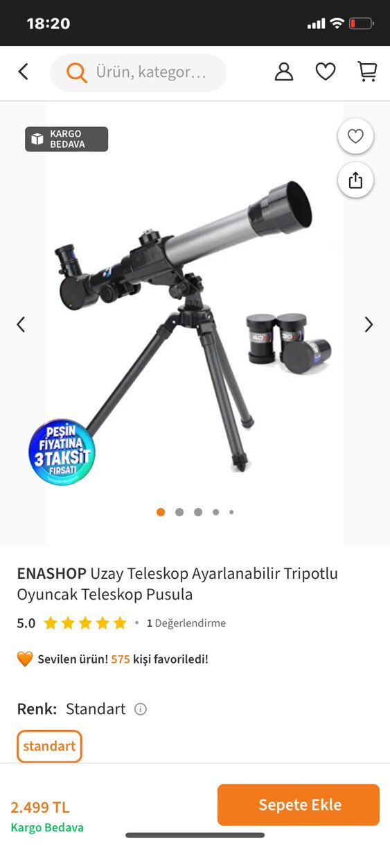 Oyuncak teleskop 3 adt merceği mevcut bir tanesi yoktur Ayarlanabilir tripot ve ekstra merceklerle birlikte gelen gri renk uzay teleskobu. Pusula da içerir, oyuncak teleskop olarak kullanılır. ⭐