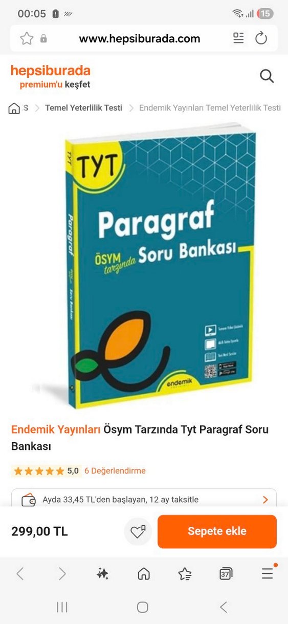 Endemik yayınevinin ÖSYM tarzında paragraf soru bankasıdır. Tamamı video çözümlü, akıllı tahta uyumlu ve yeni nesil sorular içerir. İlk 6 sayfasında 24 soru çözülmüş geri kalan kısımları temiz ve eksiksiz isteyenler için video çekebilirim
