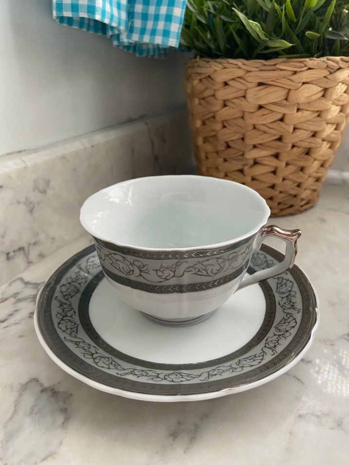Görsellerde görüldüğü gibidir. Çay boydur. Fincan boy 6 cm ağız genişlik 9 cm. Tabak genişlik 14,5 cm.