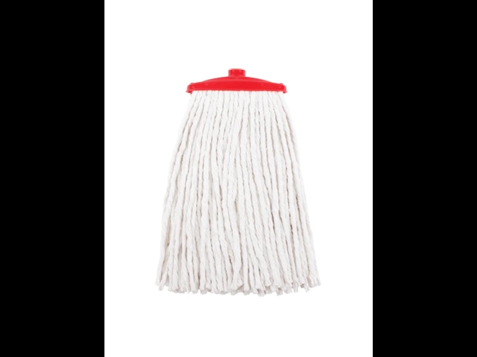 Renkli kırmızı saplı beyaz paspas başlığı, kirleri etkili şekilde temizlemek için yumuşak ipliklere sahiptir.