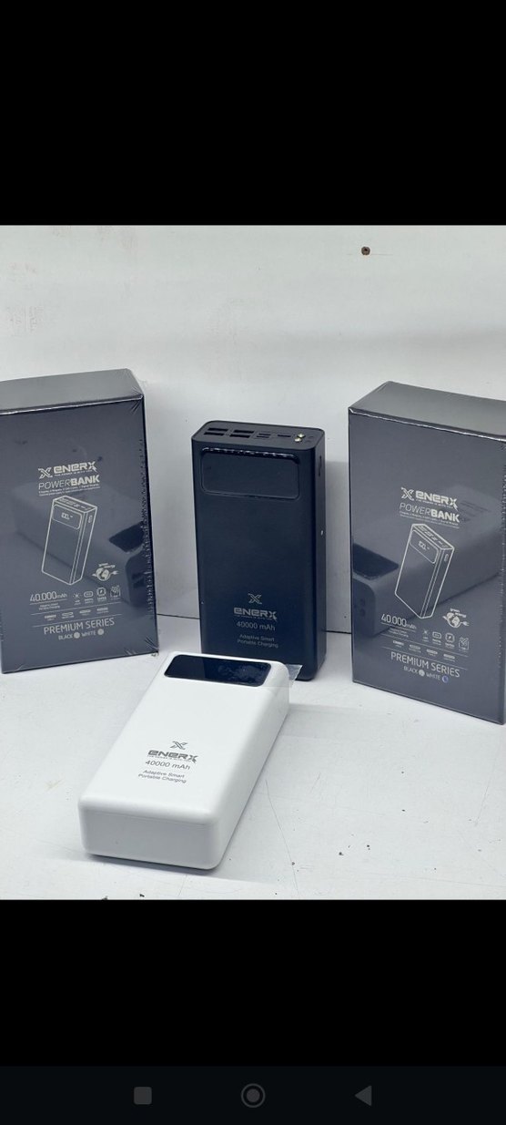 Enerx 40000 mAh kapasiteli siyah ve beyaz power bankler, çoklu USB portları ve taşınabilir tasarımla sunuluyor.
