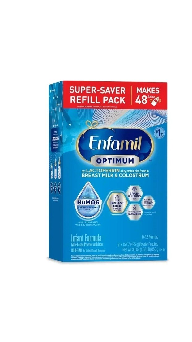 Enfamil Optimum bebek sütü tozu, laktoferrin içerir ve beyin gelişimini destekler. Süper tasarruflu 2'li paket olarak sunulur.