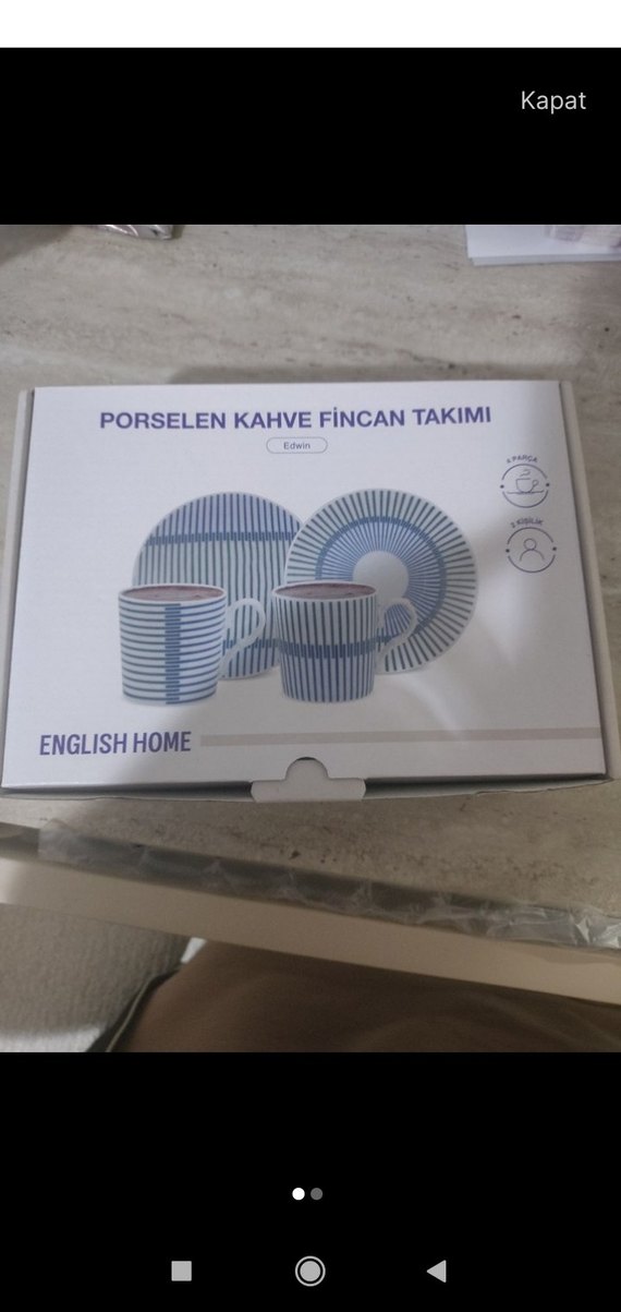 4 parçadan oluşan porselen kahve fincan takımı, gri ve beyaz çizgili modern tasarıma sahip. Kahve servisi için uygundur. ☕