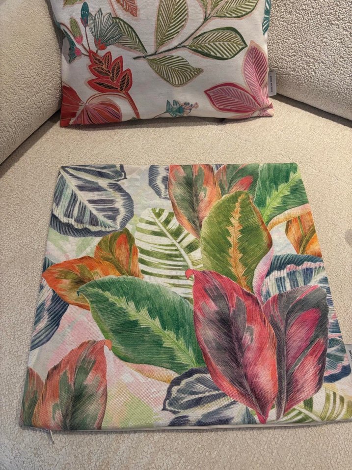 Hafif zemin üzerine çok renkli yaprak desenleriyle bohem tarzda baskılı kırlent kılıfı. 2 adet tek olarakta satın alabilirsiniz 45*45