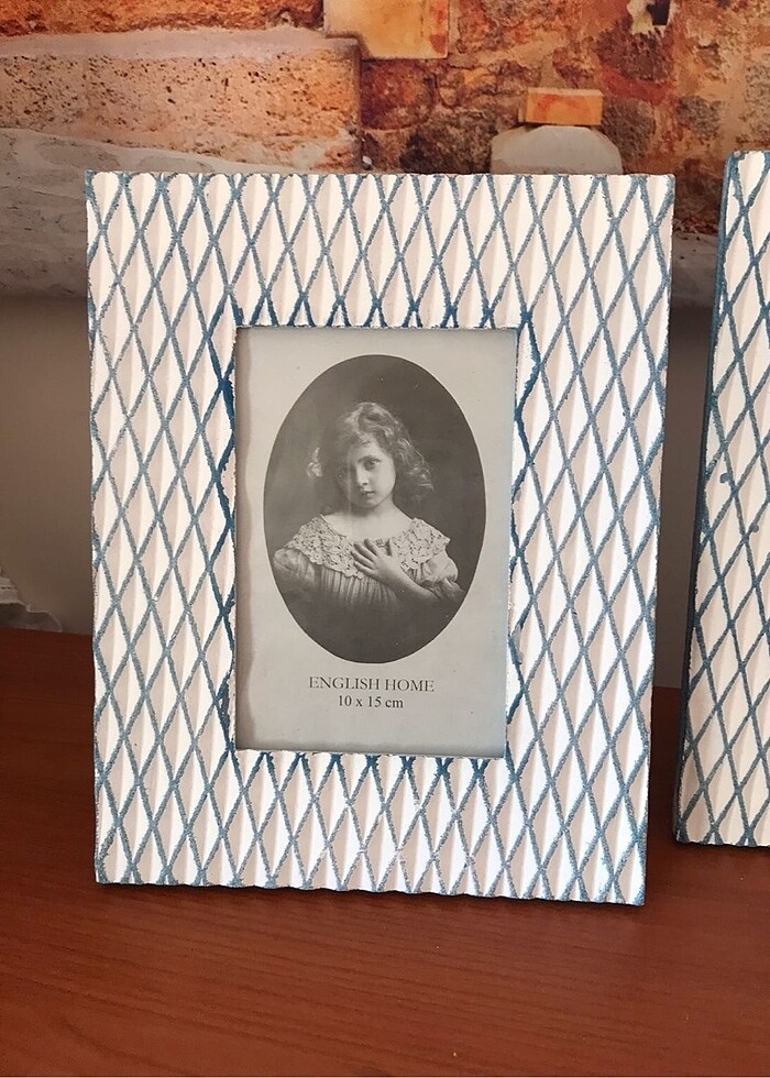 Mavi beyaz renklerde büyük çerçeve dıştan 19/24 fotoğraf konulan bölüm 10/15 cm sıfır ürün 2 adettir tek alabilirsiniz