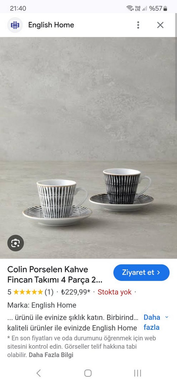 English Home Colin Porselen Kahve Fincan Takımı 6 Kişilik takım