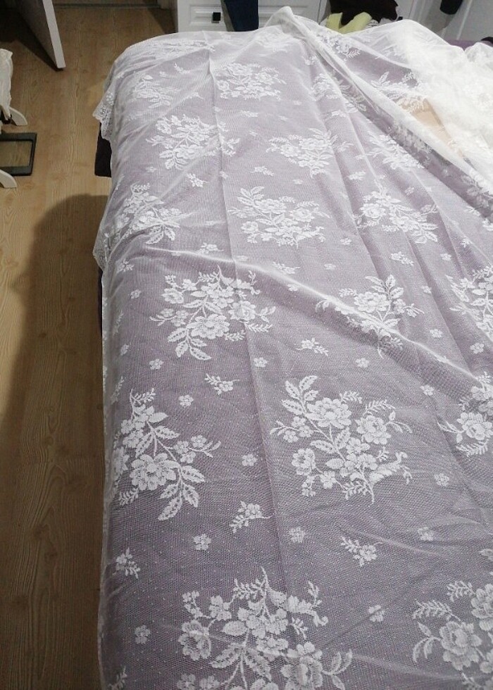 Beyaz, tül, secret örme masa örtüsü boy 2.60 cm en 1.85 hiç kullanılmamış