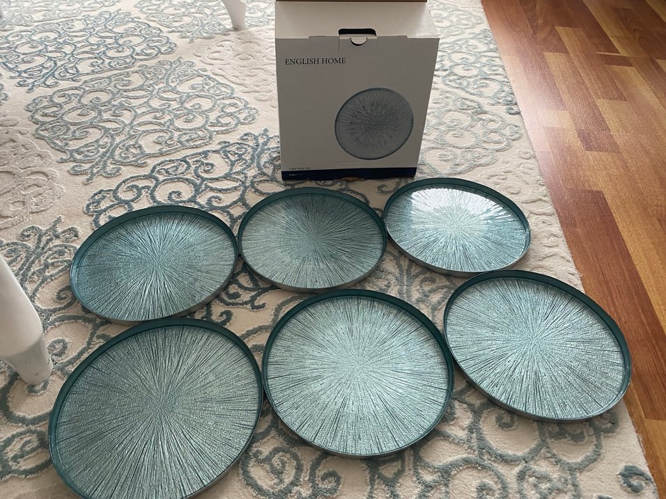 English Home markalı, mavi baskılı ve çağdaş tarzda, canlı gri-mavi renkli 6 adet tabak seti. Desenli ve dokulu yüzeye sahiptir. ️