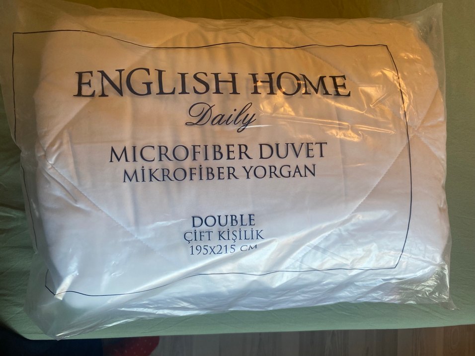 English Home mikrofiber yorgan, baskılı beyaz desene sahip, 195x215 cm ölçülerinde, çift kişilik kullanıma uygun. ️