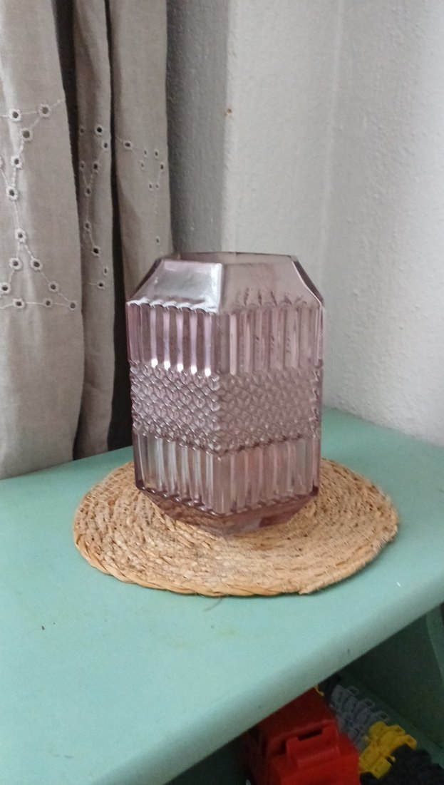Pastel bej renkte, desenli cam vazo. Her ortama zarif bir dokunuş katar, çiçekler için uygundur. 17 cm dir