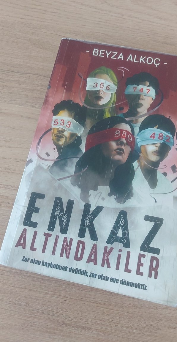 'Enkaz Altındakiler' romanı. Sadece kapağında biraz soyulma vardır. Onun haricinde sorun yoktur.