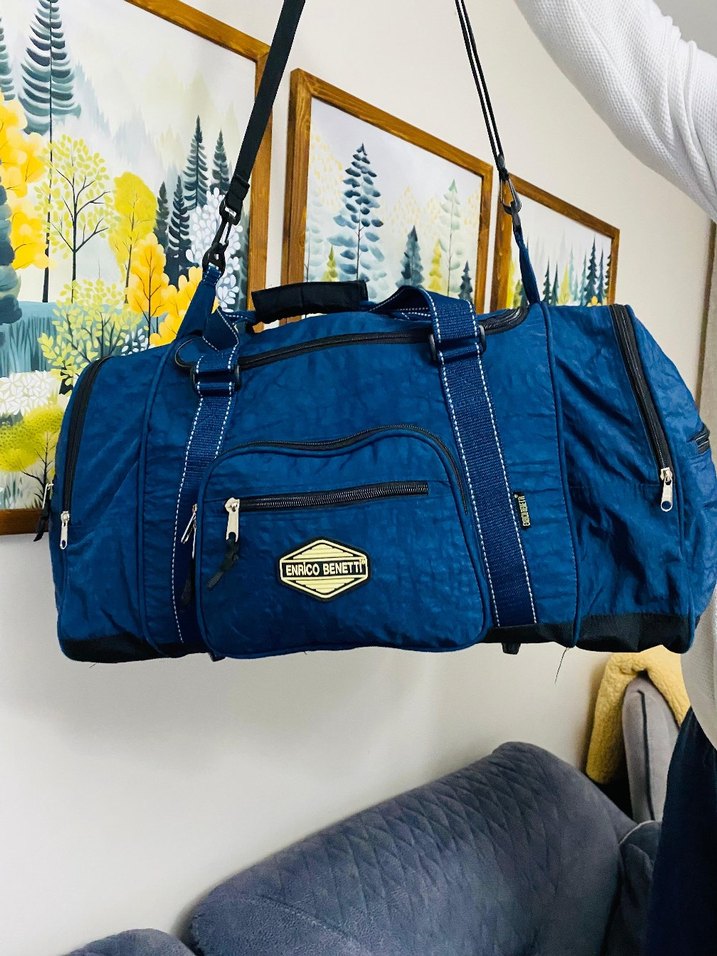 İtalyan malı orjinal. Lacivert renkli, baskılı erkek spor çantası, çok bölmeli fermuarlı yapıya sahip. Spor ve günlük kullanıma uygun, ayarlanabilir askılı. ️♂️