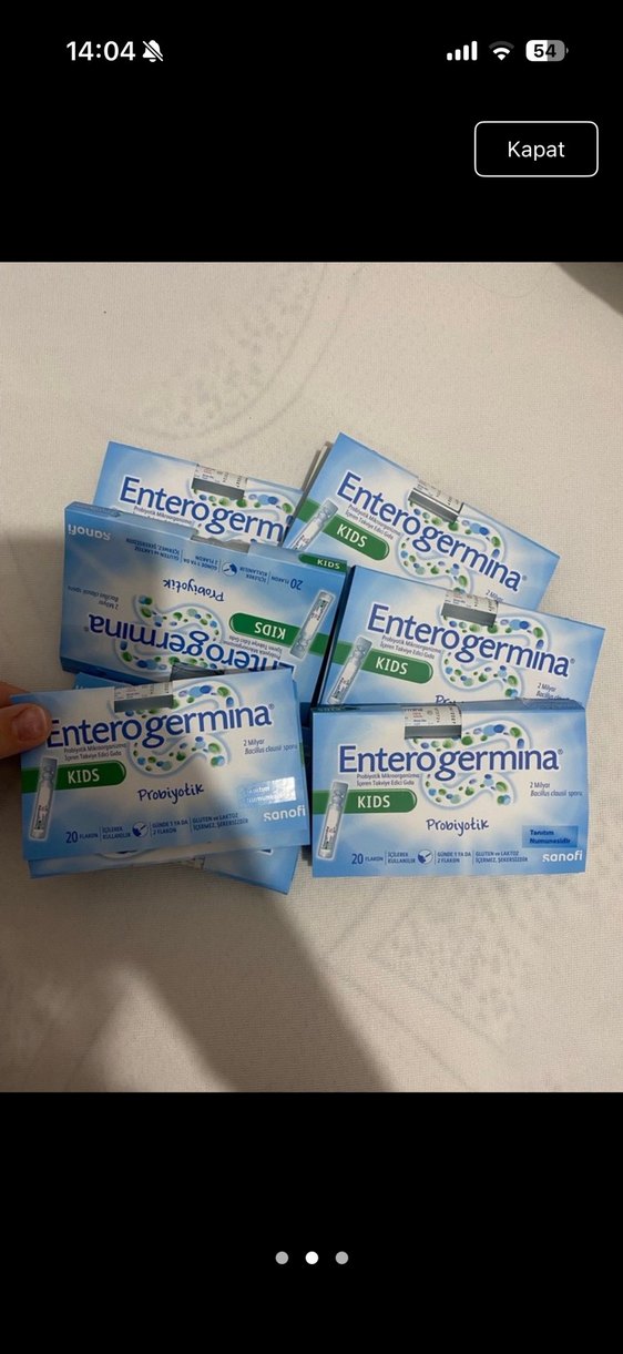 Enterogermina Kids probiyotik, çocukların sindirim sağlığını destekleyen 20 flakonluk pakette sunulur. Günlük kullanıma uygundur.