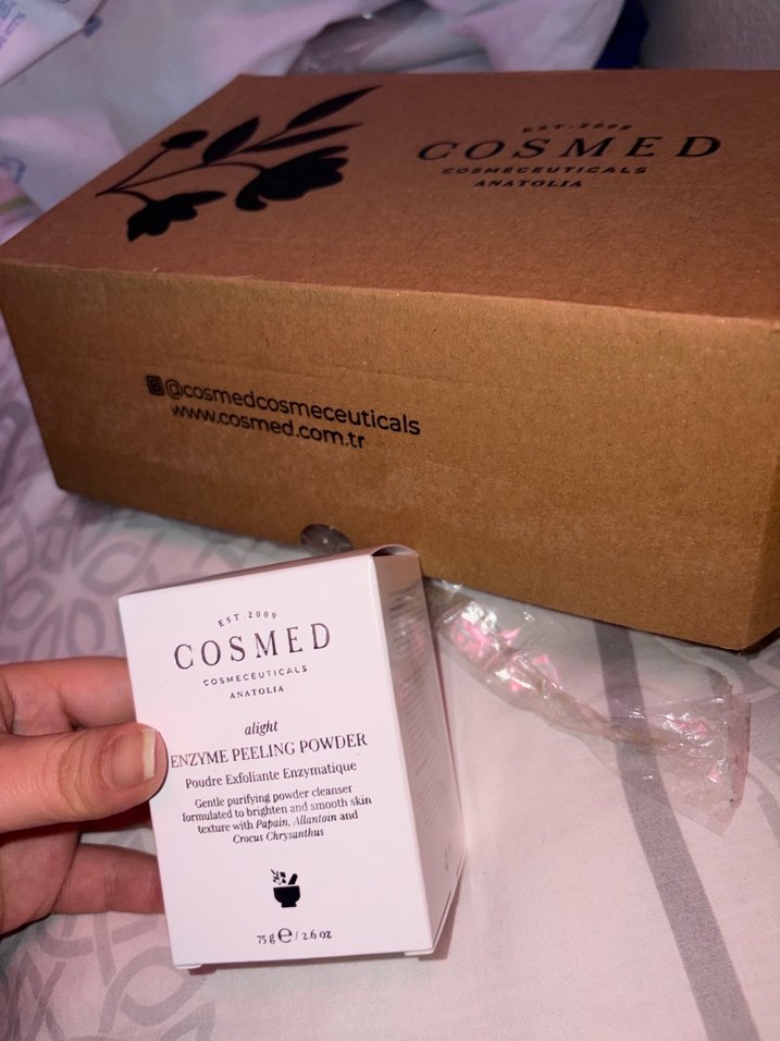 COSMED Enzimli Peeling Tozu, papain, allantoin ve turunç krizantem özleriyle cildi nazikçe arındırır ve pürüzsüzleştirir. Camel pastel ambalajda, 75g. Hassas ciltlere çok uygun asit içermiyor gözeneklere çok iyi geliyor sıfır ambalajlı