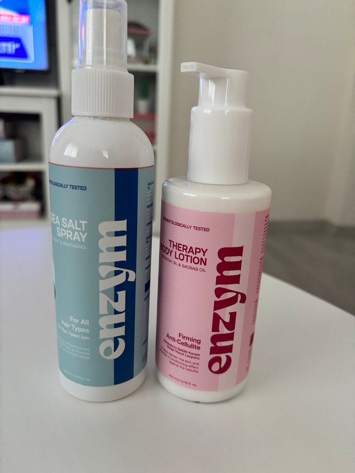 Enzym Therapy vücut losyonu ve deniz tuzu spreyi seti. Sorunsuz 2-3 kez kullanıldılar tamamen dolu sayılırlar