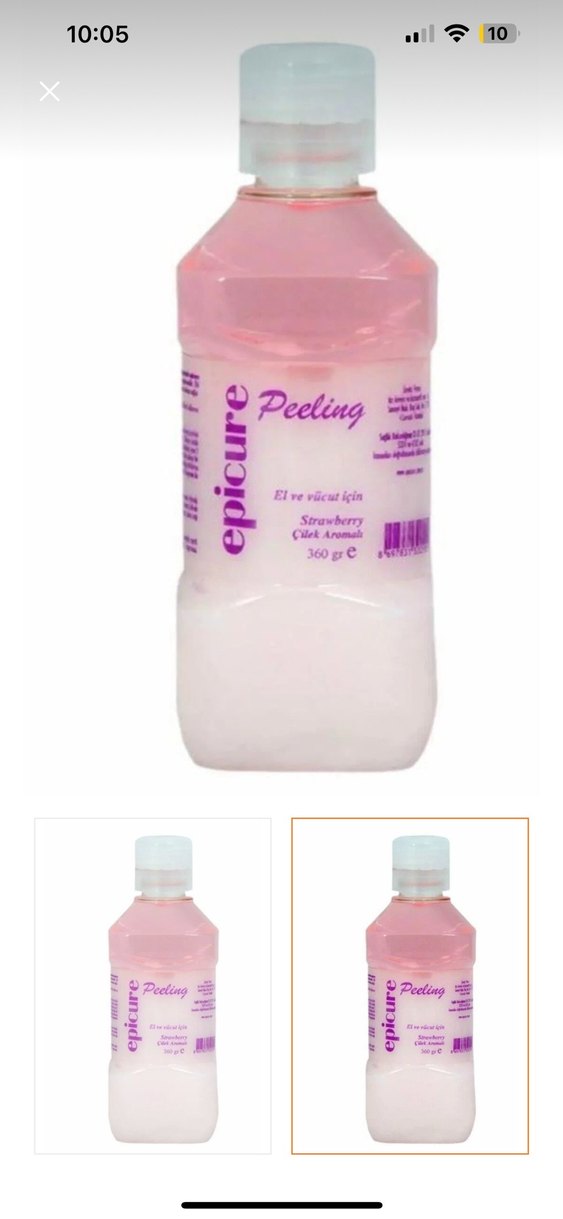 Epicure Peeling, çilek kokulu, el ve tırnak bakımı için 360 gram tırnak temizleyici.