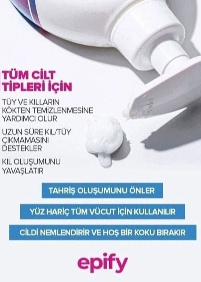 Orijinal Epify tüy dökücü krem.Kadın ve Erkek kullanımina uygundur.Yeni ürünlerde karekod uygulaması kaldırılmıştır.Barkod okutarak orijinalliğini kontrol edebilirsiniz.